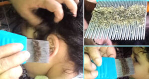 La niña llora del dolor en la cabeza, cuando su madre...